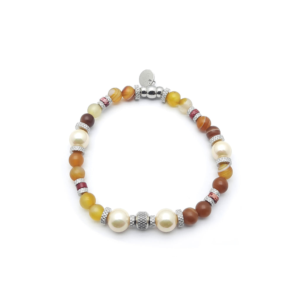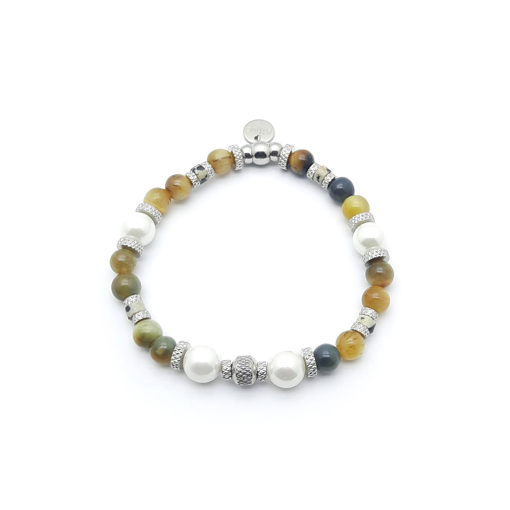 Eleganza artigianale italiana in ogni dettaglio. Il bracciale Lumina – La luce interiore che guida e ispira è un simbolo di stile e carattere. Realizzato a mano, combina con armonia perle di Majorca con pietre naturali multicolore di forma tonda, alternando finiture lucide e opache per un effetto sofisticato e dinamico. La chiusura e i dettagli in acciaio 316L garantiscono resistenza, durata e sono ipoallergenici. Un accessorio dal design elegante e versatile, perfetto per completare ogni look con un tocco di luce interiore e stile autentico..