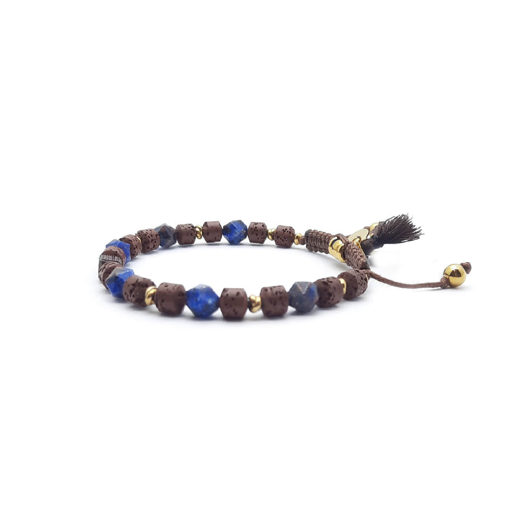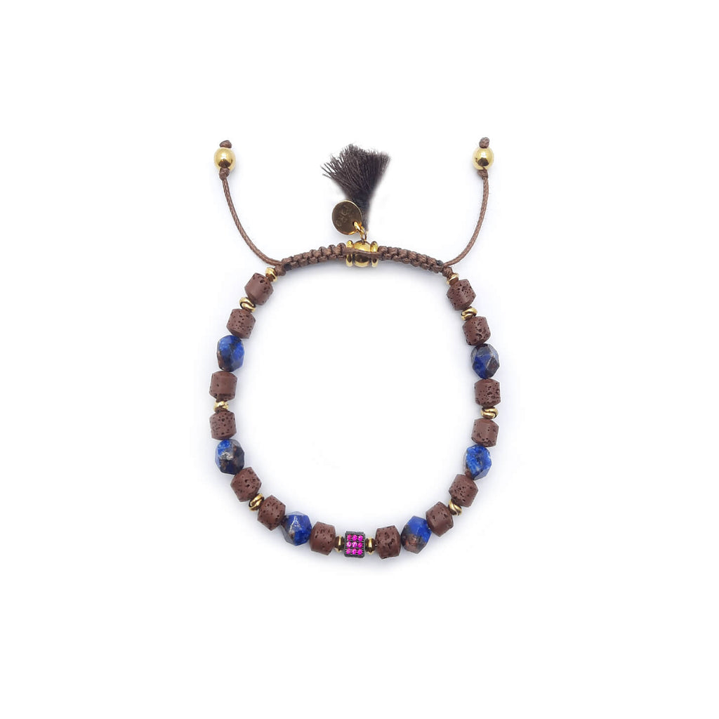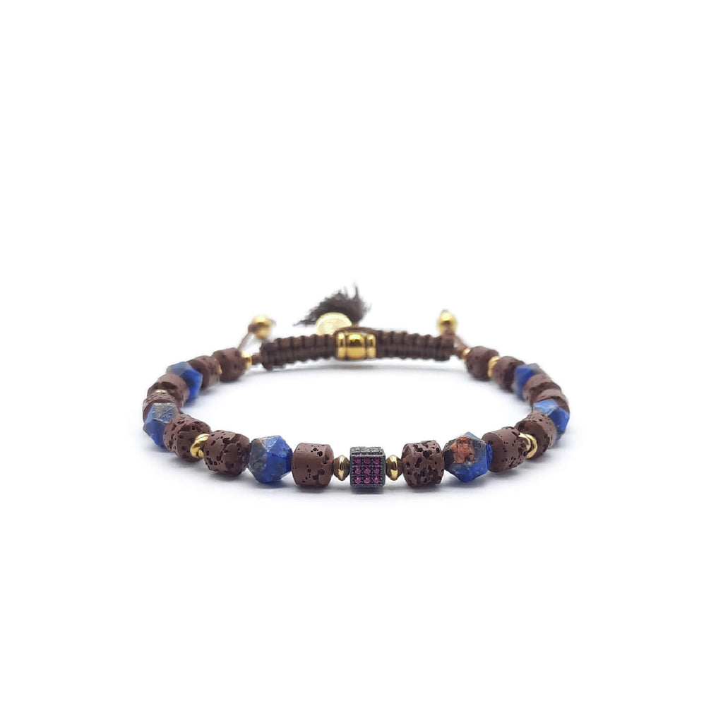 L'aggiunta perfetta alla collezione di accessori di ogni uomo. Questo bellissimo pezzo è realizzato con vera pietra lavica e diaspro, entrambi noti per le loro proprietà stabilizzanti e riequilibranti. Ogni pietra è accuratamente annodata a mano con i tradizionali nodi portafortuna per aggiungere simbolismo e fascino, creando un design davvero unico e significativo. Il bracciale è impreziosito da scintillanti cristalli di zirconi cubici, che aggiungono un tocco di raffinatezza e stile moderno. Che tu stia facendo acquisti in negozio o online, questo bracciale Keval è un must per chiunque desideri aggiungere un tocco di eleganza ed energia positiva al proprio look.