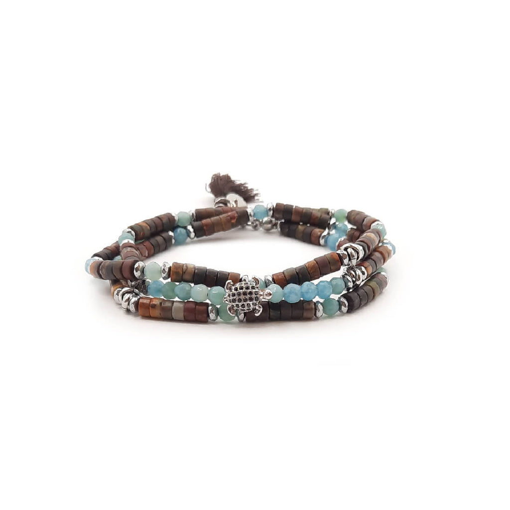 Considerata la pietra del coraggio, viene utilizzata per calmare e alleviare le paure e le fobie. Questa pietra dal colore dell'acqua ha un effetto calmante sui nervi e porta equilibrio a livello emotivo, mentale e fisico, aiutando così a raggiungere il ritmo interiore. Combattere la depressione, scaccia l'ansia e accentua la fiducia e la consapevolezza di sé.