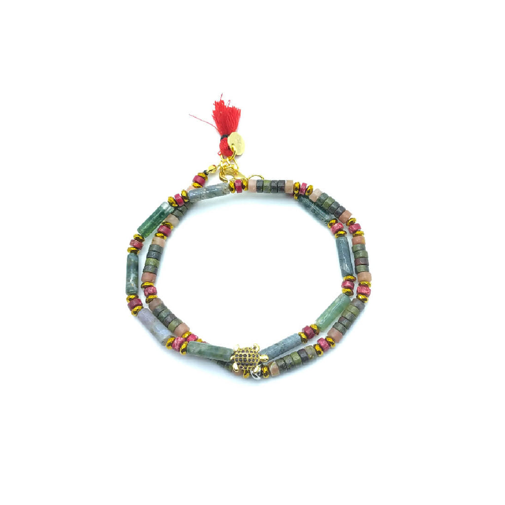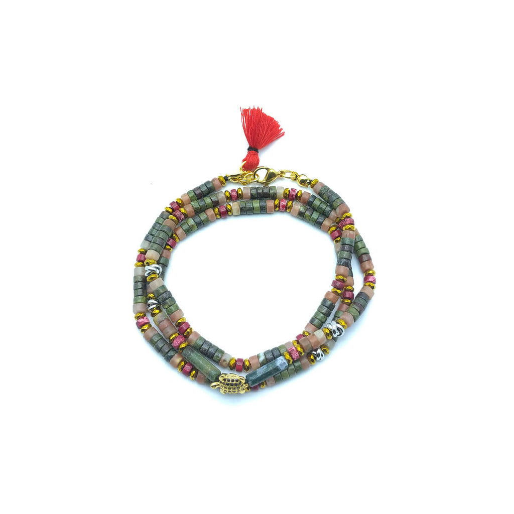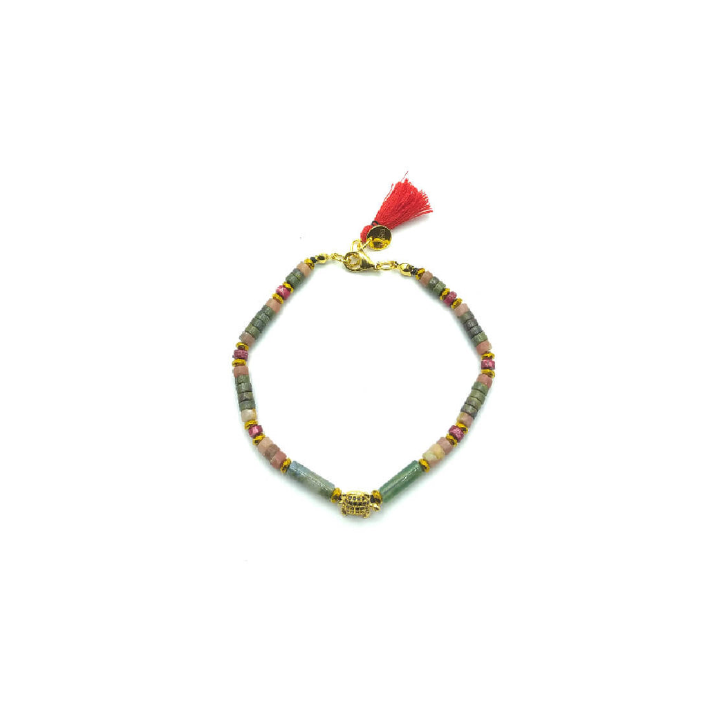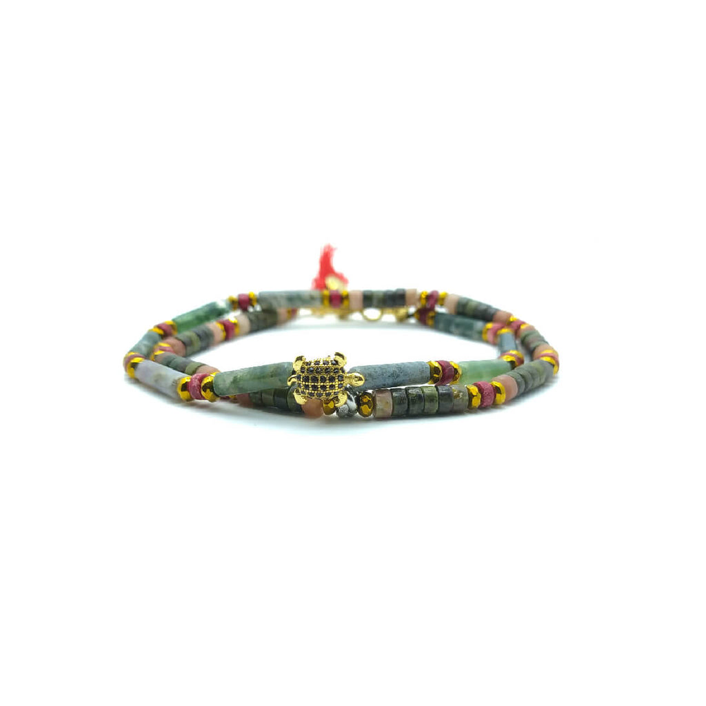 I cristalli neri utilizzati in questo bracciale trasmettono forza e potere a chi lo indossa. Tara nera è considerata l’invincibile, dai toni scuri e dall’aspetto moderatamente irato. La divinità regge il vaso nero da cui si liberano le armi che danno il potere di distruggere i sortilegi e le influenze negative. Il nero esotericamente e socialmente indica la volontà di andare contro la massa e di seguire la propria volontà, senza attenersi alle linee guida dettate dalla società.