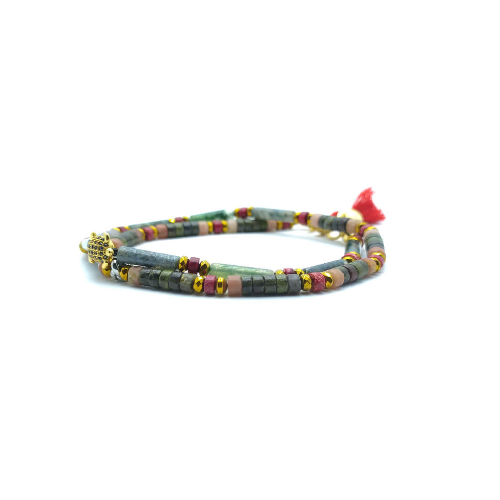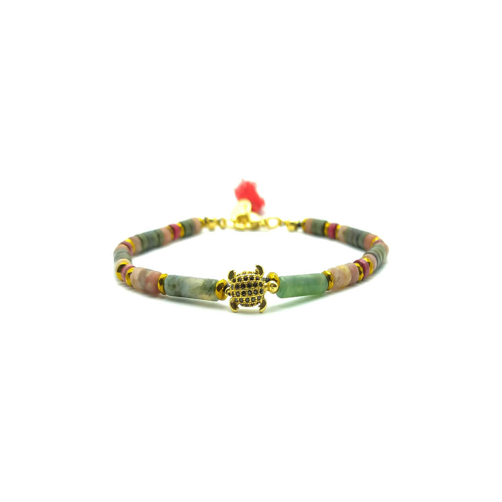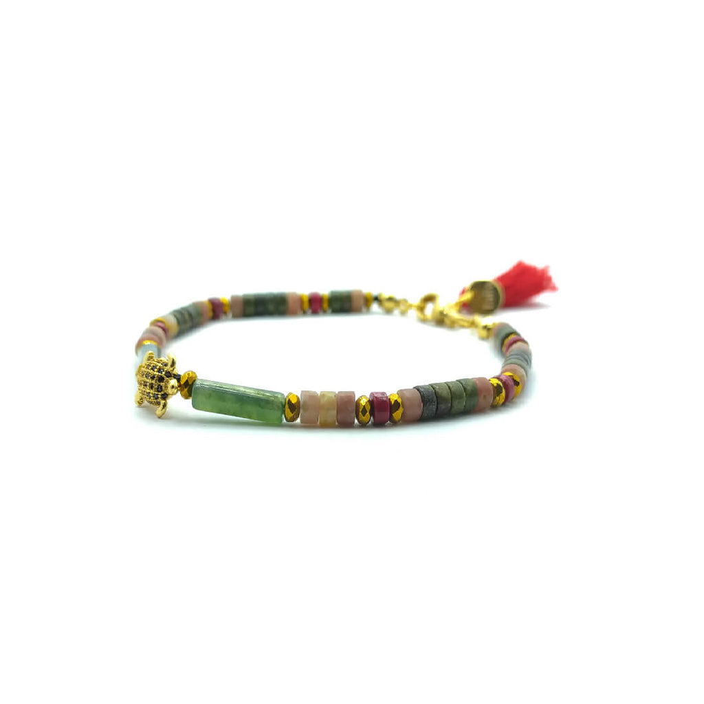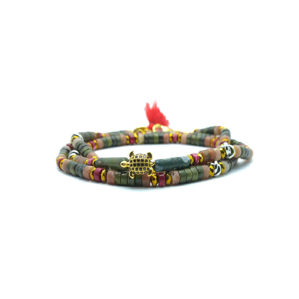 I cristalli neri utilizzati in questo bracciale trasmettono forza e potere a chi lo indossa. Tara nera è considerata l’invincibile, dai toni scuri e dall’aspetto moderatamente irato. La divinità regge il vaso nero da cui si liberano le armi che danno il potere di distruggere i sortilegi e le influenze negative. Il nero esotericamente e socialmente indica la volontà di andare contro la massa e di seguire la propria volontà, senza attenersi alle linee guida dettate dalla società.
