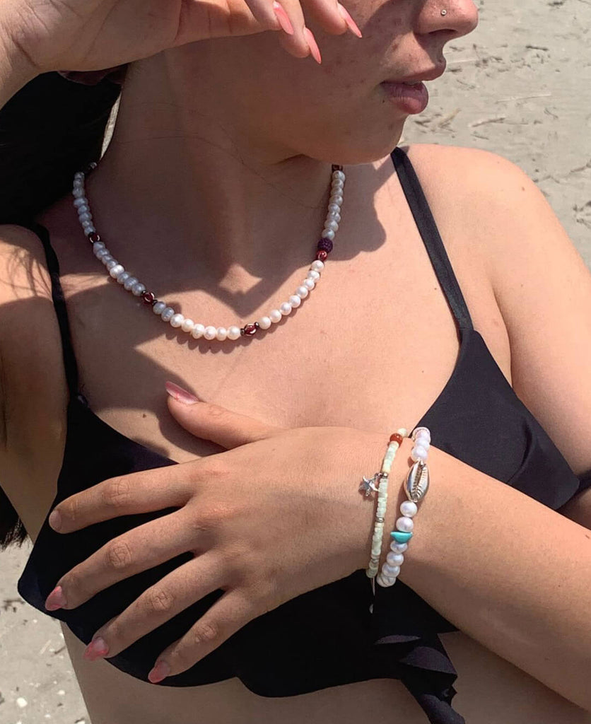 La collezione Khor di TaRa Venezia ispirata al Mare, Sole, Estate incarna lo spirito libero dell'estate e la bellezza naturale del mare. Realizzati con conchiglia naturale e perle, questi bracciali portano con sé l'essenza del mare e della spiaggia, offrendo un tocco di freschezza e leggerezza a chi li indossa. L'elemento centrale in cristalli CZ aggiunge un tocco di raffinatezza, completando perfettamente il design. Le Perle d'acqua dolce La più antica gemma conosciuta che simboleggia integrità, innocenza e grazia. Queste perle hanno un forte potere di guarigione e sono utili anche per la crescita emotiva. Altre caratteristiche dalle perle d'acqua dolce sono la capacità di attrarre amore e protezione. Da sempre viene indossata come simbolo di ricchezza e potere.