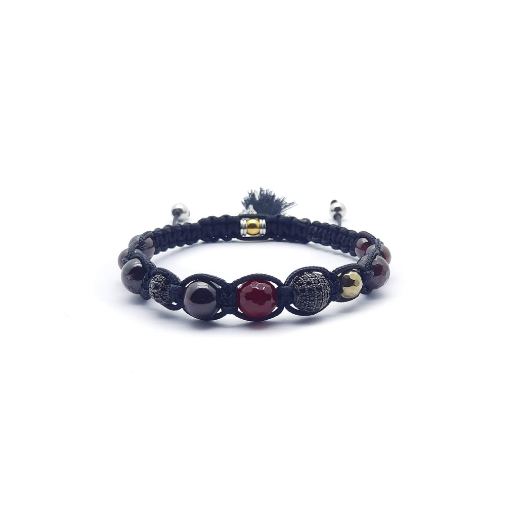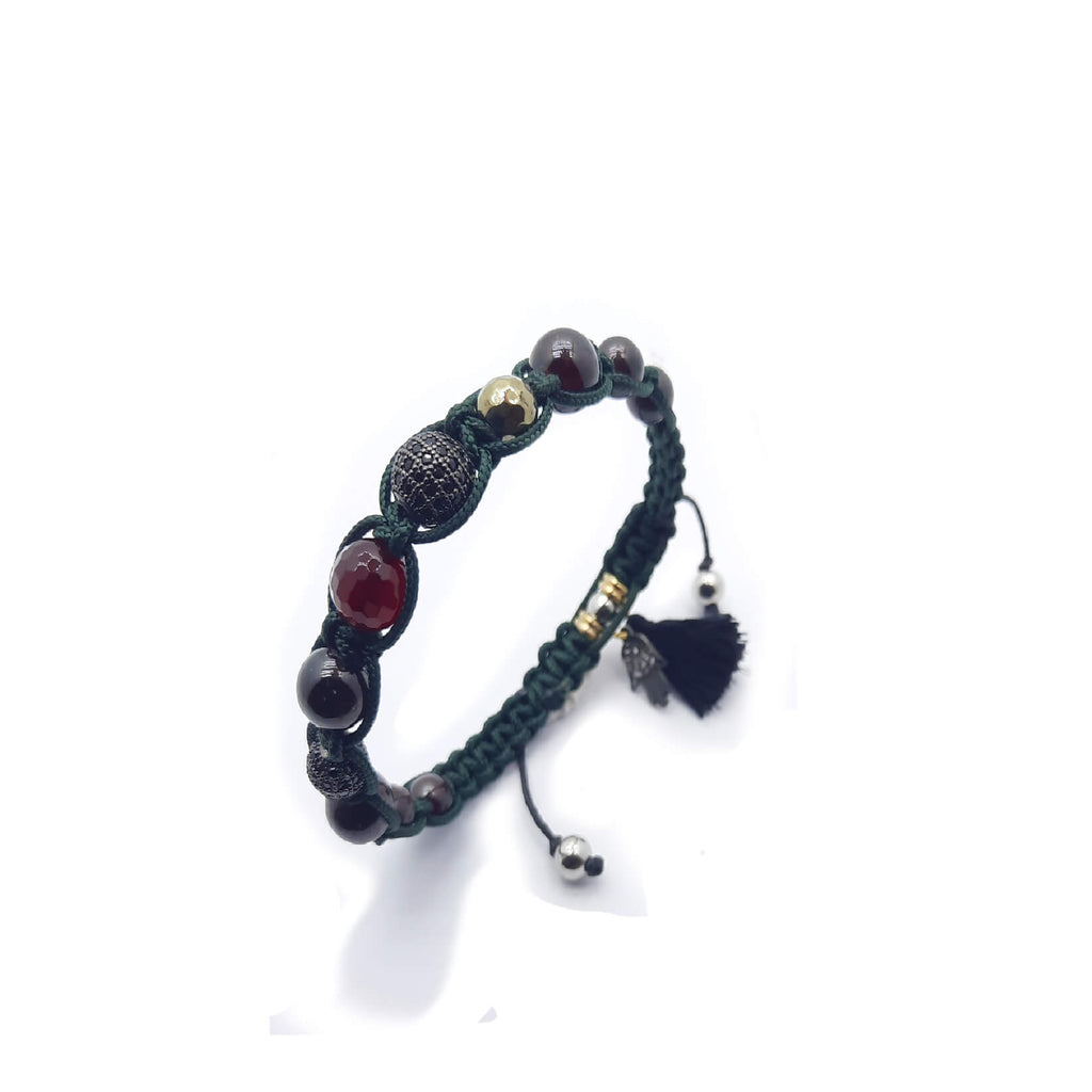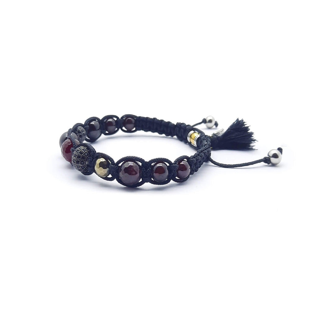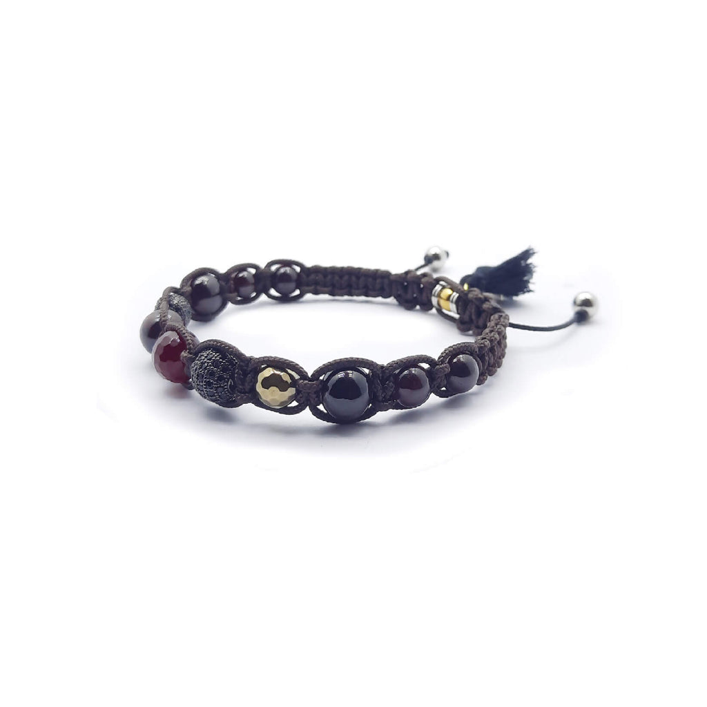 I cristalli neri utilizzati in questo bracciale trasmettono forza e potere a chi lo indossa. Tara nera è considerata l’invincibile, dai toni scuri e dall’aspetto moderatamente irato. La divinità regge il vaso nero da cui si liberano le armi che danno il potere di distruggere i sortilegi e le influenze negative. Il nero esotericamente e socialmente indica la volontà di andare contro la massa e di seguire la propria volontà, senza attenersi alle linee guida dettate dalla società.