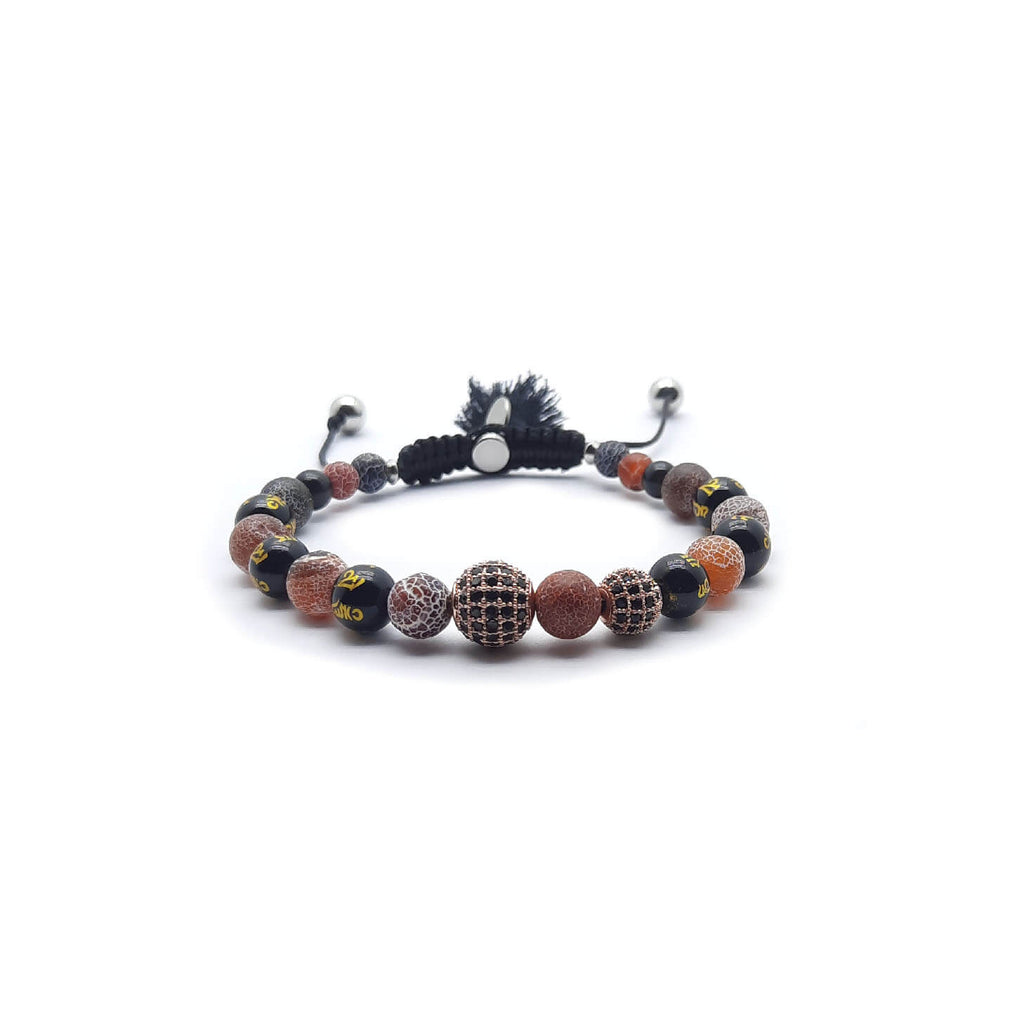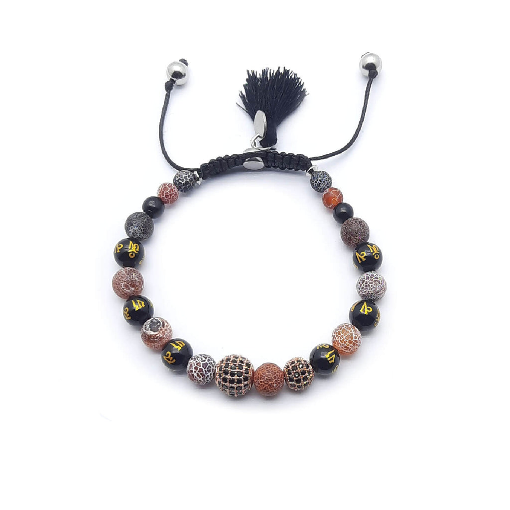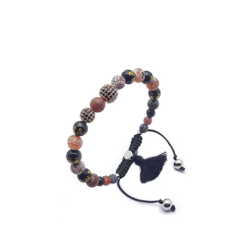 I cristalli neri utilizzati in questo bracciale trasmettono forza e potere a chi lo indossa. Tara nera è considerata l'invincibile, dai toni scuri e dall'aspetto moderatamente irato. La divinità regge il vaso nero da cui si liberano le armi che danno il potere di distruggere i sortilegi e le influenze negative. Il nero esotericamente e socialmente indica la volontà di andare contro la massa e di seguire la propria volontà, senza attenersi alle linee guida dettate dalla società.