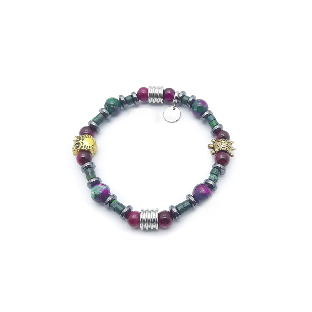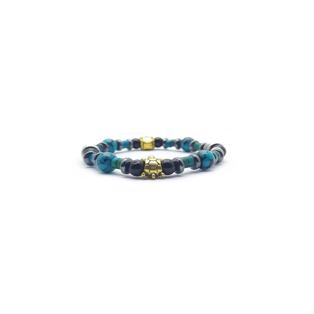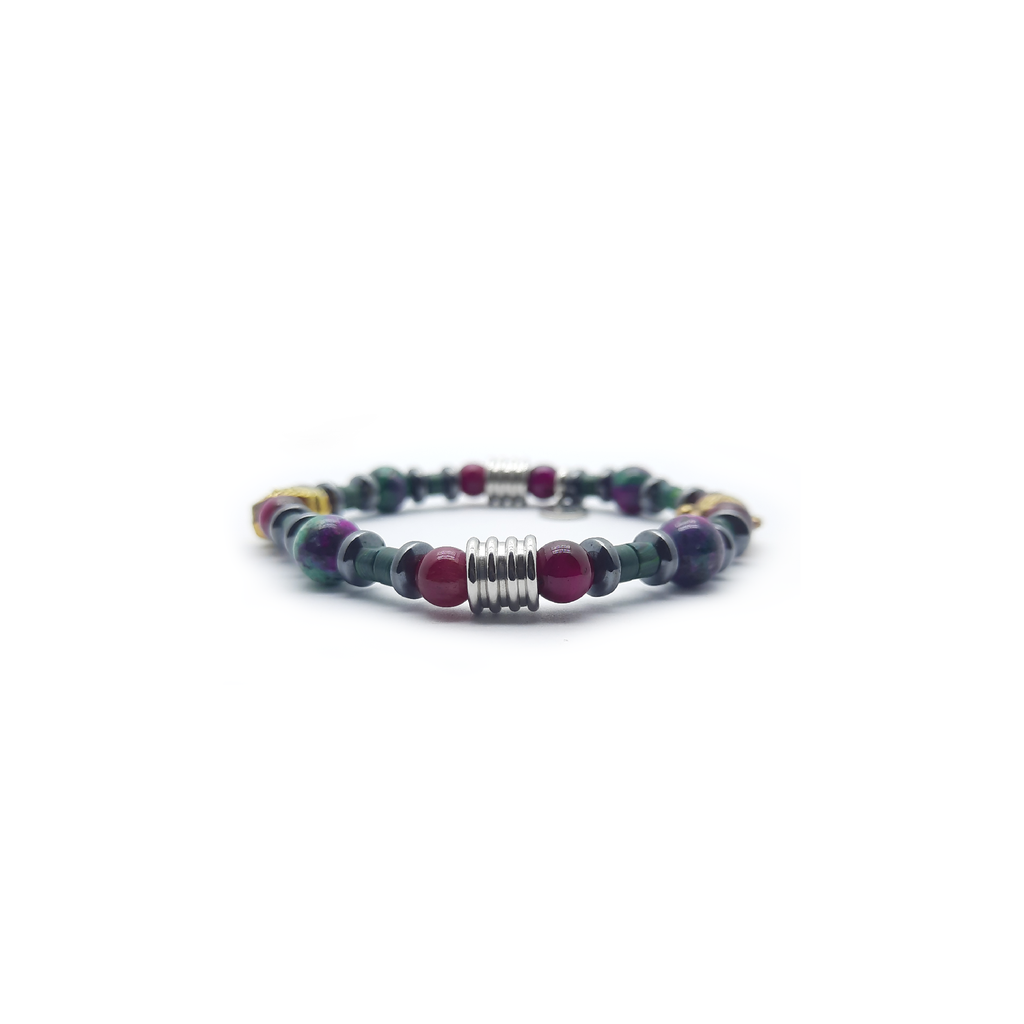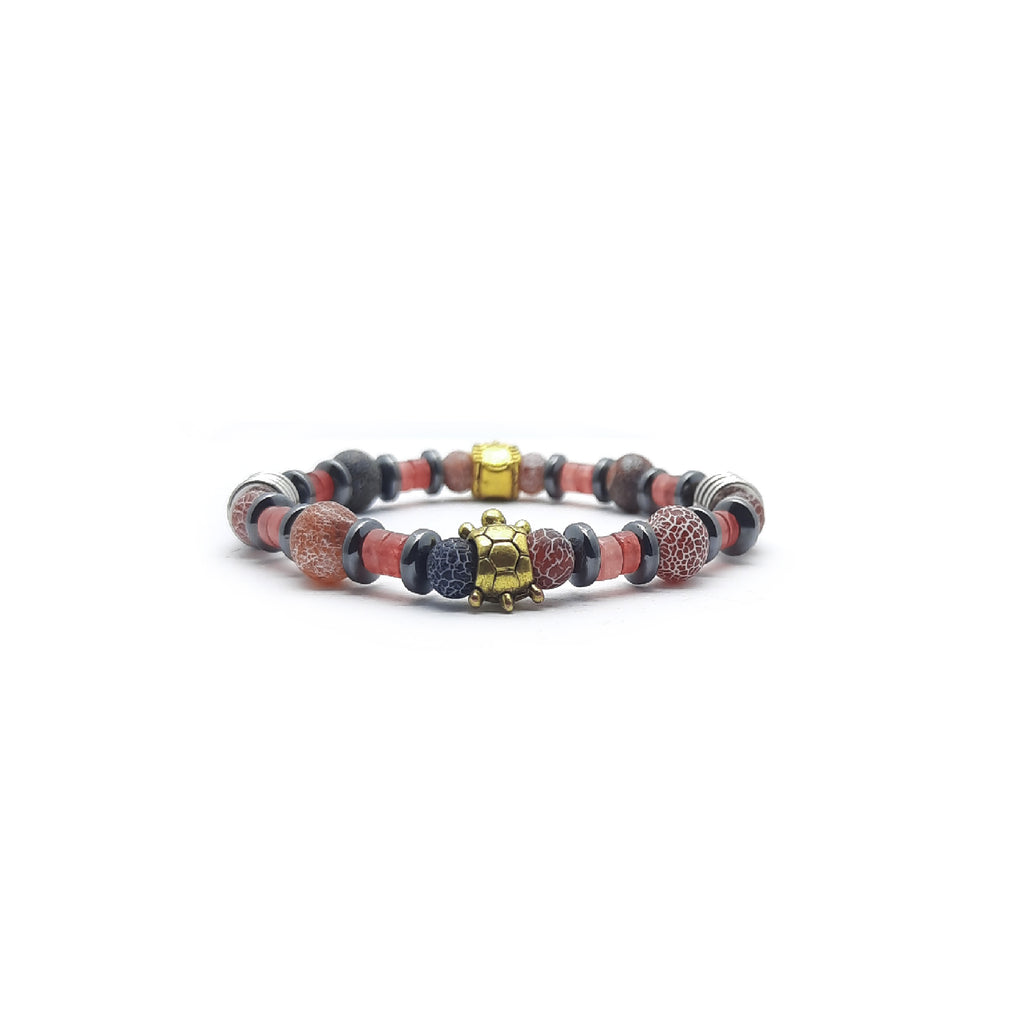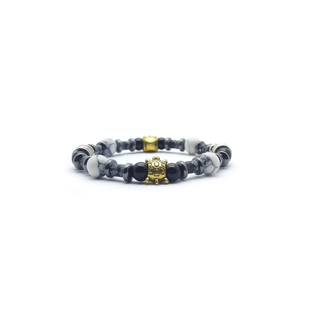 Un equilibrio perfetto tra forza ed eleganza. Il bracciale è un accessorio unisex dal design raffinato, realizzato con pietre naturali di diverse dimensioni e tonalità. Le quattro pietre centrali da 8 mm, protagoniste del design, si alternano armoniosamente con elementi da 6 mm, creando un gioco di contrasti dinamico e sofisticato. La struttura elastica assicura una vestibilità confortevole e adattabile, mentre i dettagli in acciaio 316L garantiscono resistenza, durata e un tocco di modernità. Un accessorio versatile, perfetto per chi desidera esprimere la propria personalità con stile ed equilibrio.