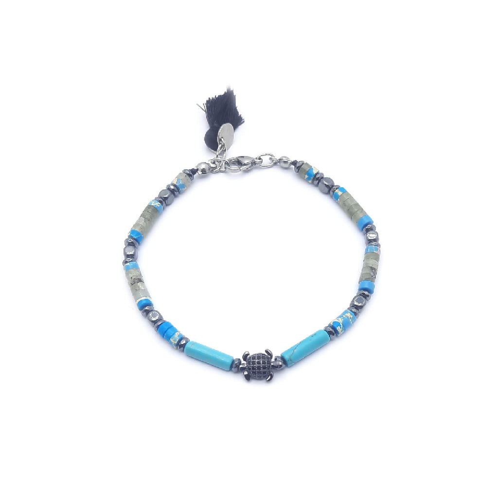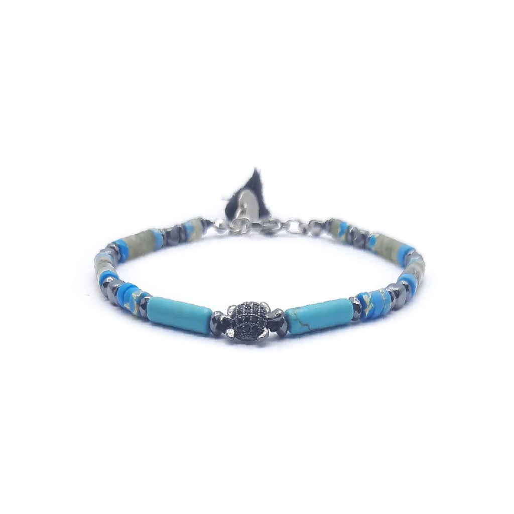 Questa pietra, che combina le energie del cielo e della terra, è ritenuta la pietra del viaggiatore grazie alla sua capacità di proteggere da incidenti, cadute e furti. Agisce in modo significativamente positivo sulla saggezza, la fiducia e la gentilezza. Il turchese è una pietra protettiva, considerata un portafortuna anche per chi cerca successo e creatività.