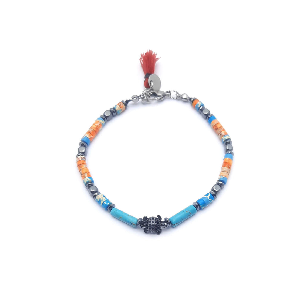 I cristalli neri utilizzati in questo bracciale trasmettono forza e potere a chi lo indossa. Tara nera è considerata l'invincibile, dai toni scuri e dall'aspetto moderatamente irato. La divinità regge il vaso nero da cui si liberano le armi che danno il potere di distruggere i sortilegi e le influenze negative. Il nero esotericamente e socialmente indica la volontà di andare contro la massa e di seguire la propria volontà, senza attenersi alle linee guida dettate dalla società.