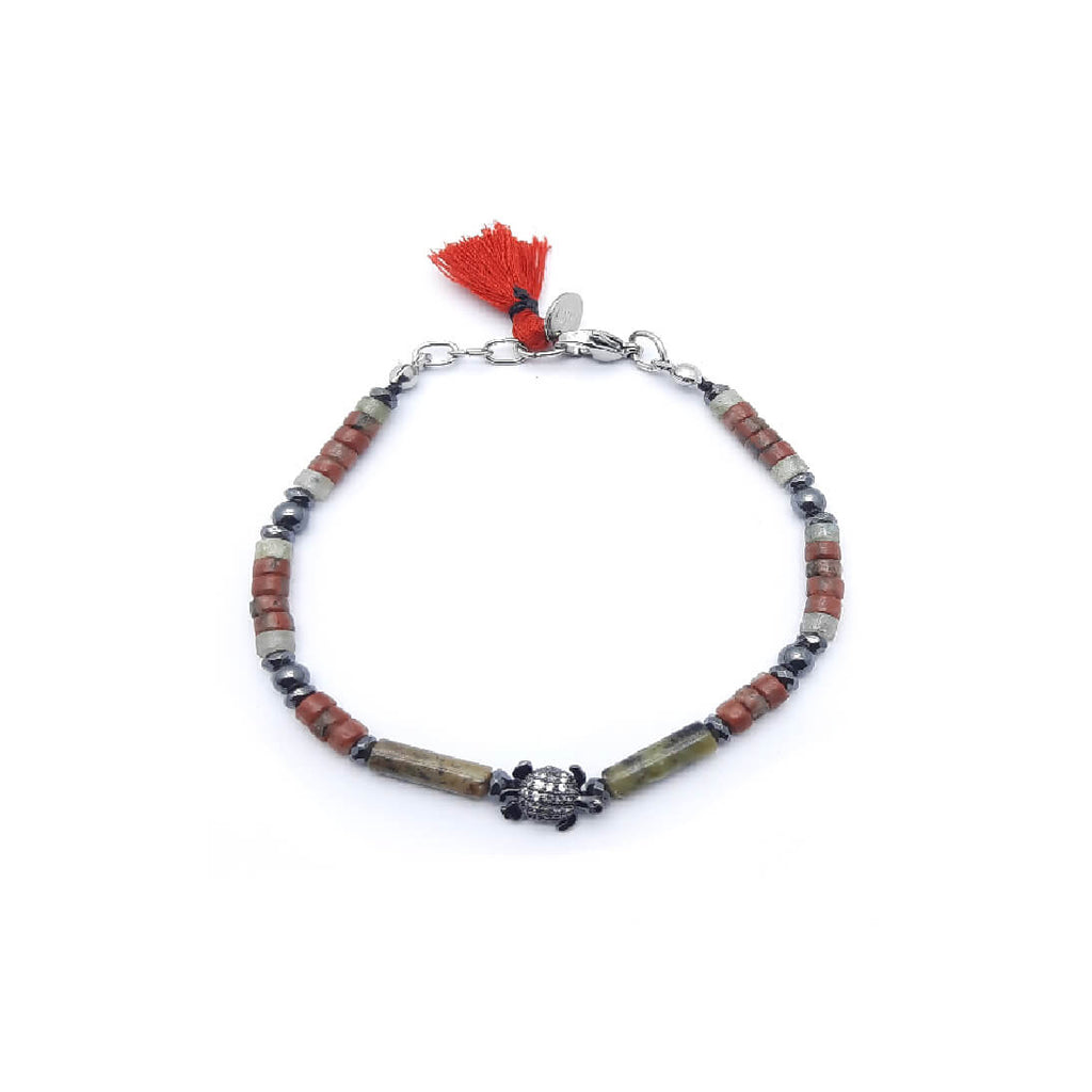 I cristalli neri utilizzati in questo bracciale trasmettono forza e potere a chi lo indossa. Tara nera è considerata l'invincibile, dai toni scuri e dall'aspetto moderatamente irato. La divinità regge il vaso nero da cui si liberano le armi che danno il potere di distruggere i sortilegi e le influenze negative. Il nero esotericamente e socialmente indica la volontà di andare contro la massa e di seguire la propria volontà, senza attenersi alle linee guida dettate dalla società.