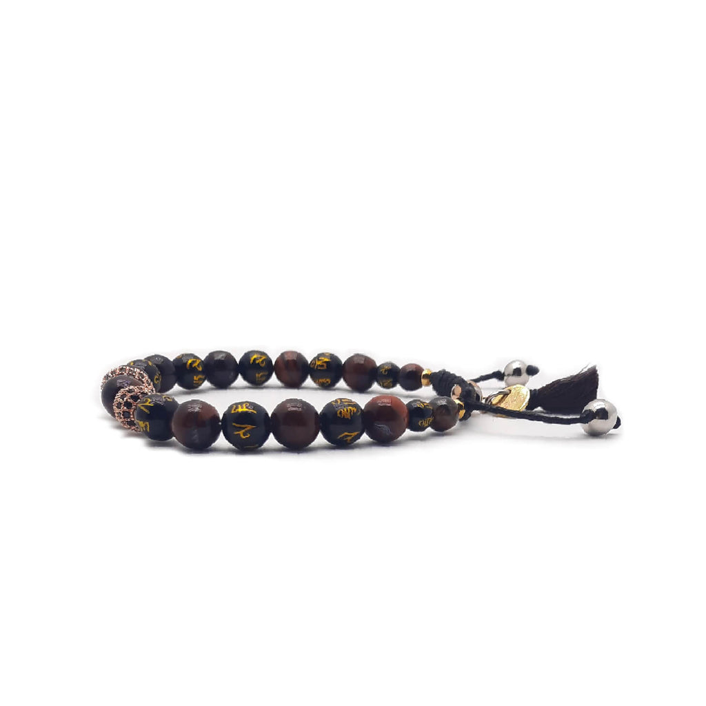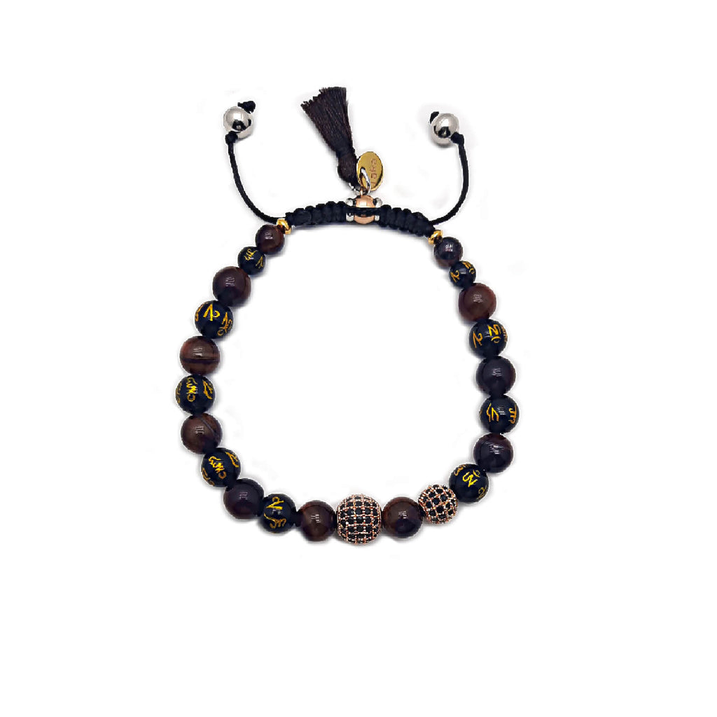 I cristalli neri utilizzati in questo bracciale trasmettono forza e potere a chi lo indossa. Tara nera è considerata l'invincibile, dai toni scuri e dall'aspetto moderatamente irato. La divinità regge il vaso nero da cui si liberano le armi che danno il potere di distruggere i sortilegi e le influenze negative. Il nero esotericamente e socialmente indica la volontà di andare contro la massa e di seguire la propria volontà, senza attenersi alle linee guida dettate dalla società.