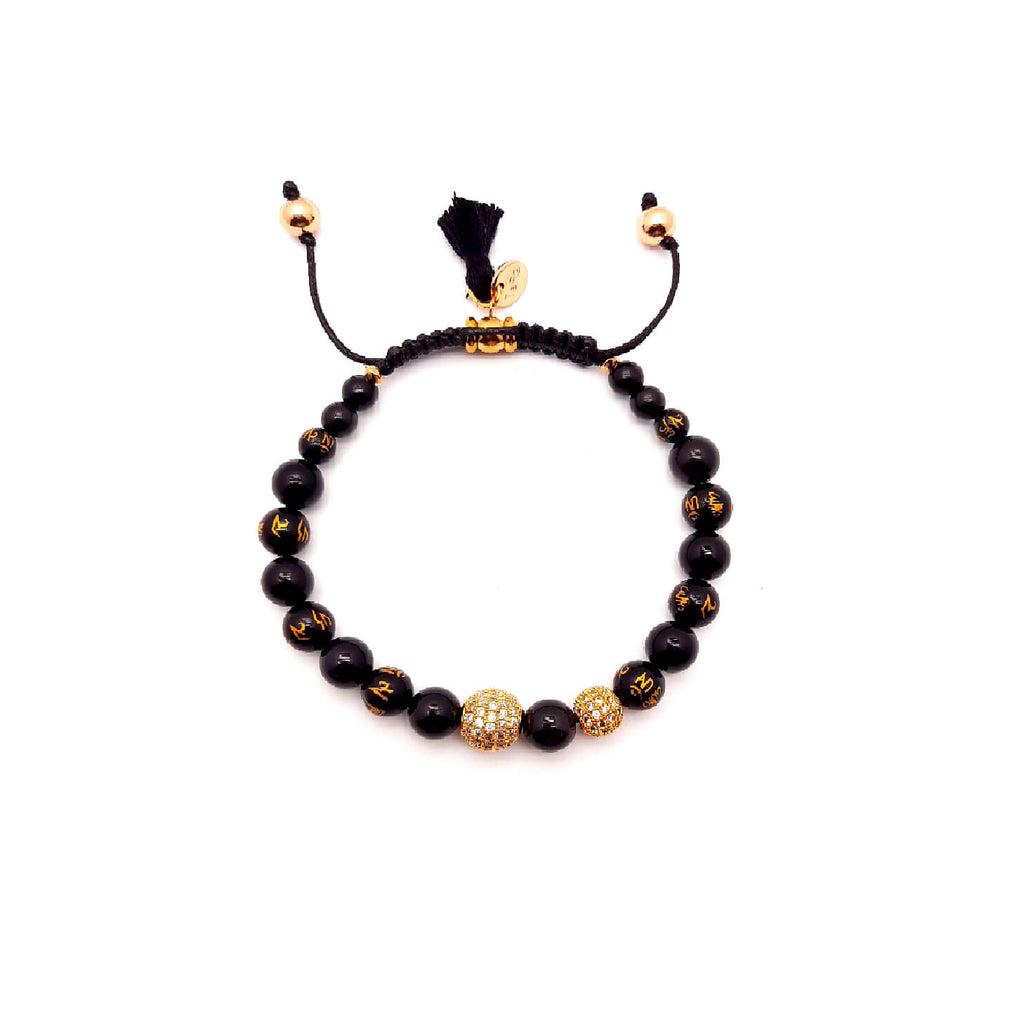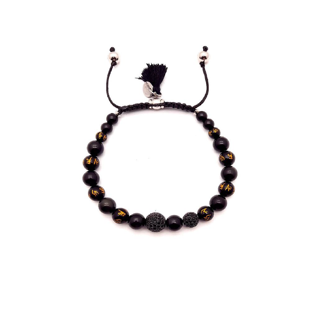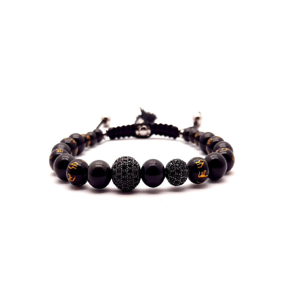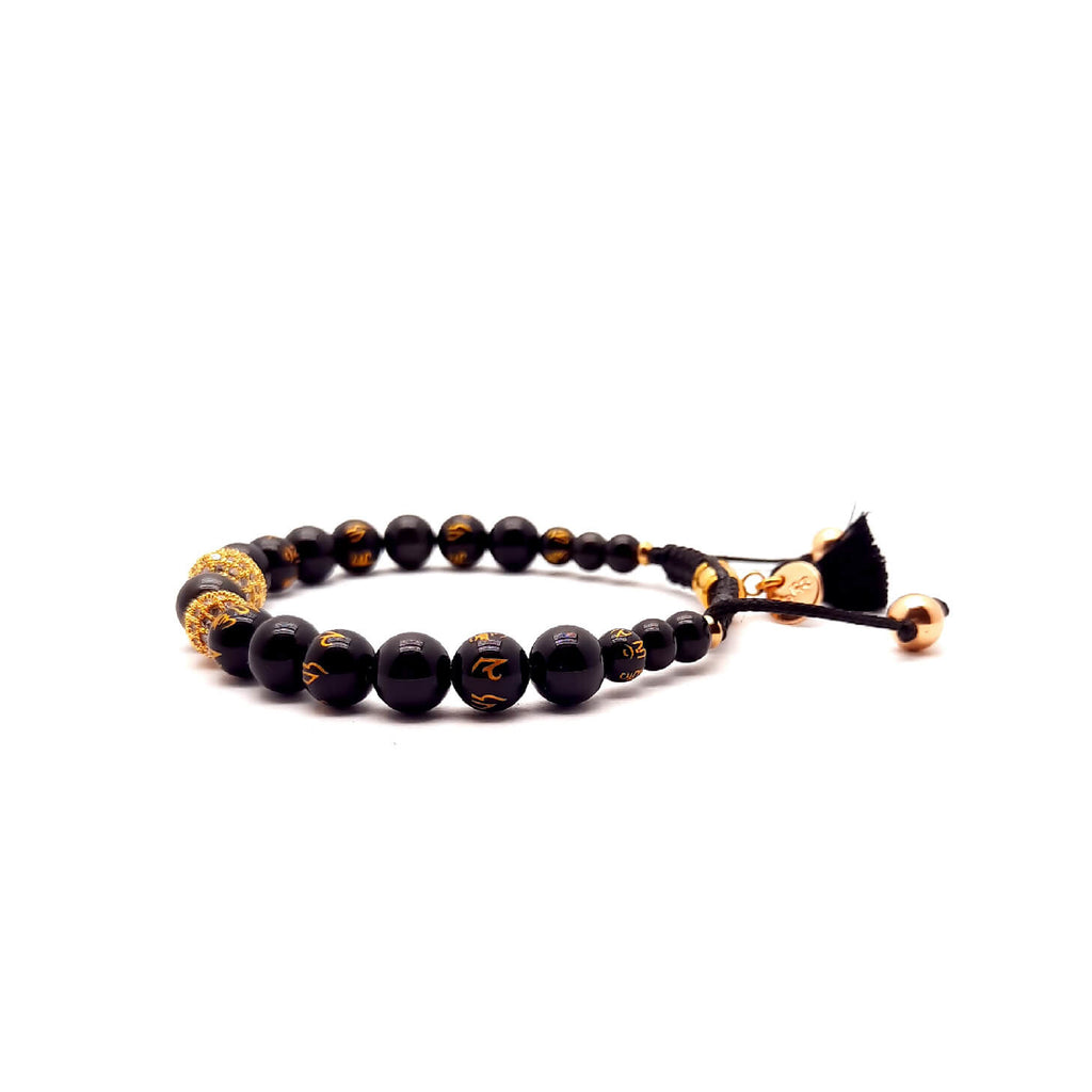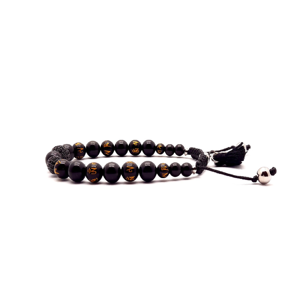 I cristalli neri utilizzati in questo bracciale trasmettono forza e potere a chi lo indossa. Tara nera è considerata l'invincibile, dai toni scuri e dall'aspetto moderatamente irato. La divinità regge il vaso nero da cui si liberano le armi che danno il potere di distruggere i sortilegi e le influenze negative. Il nero esotericamente e socialmente indica la volontà di andare contro la massa e di seguire la propria volontà, senza attenersi alle linee guida dettate dalla società.